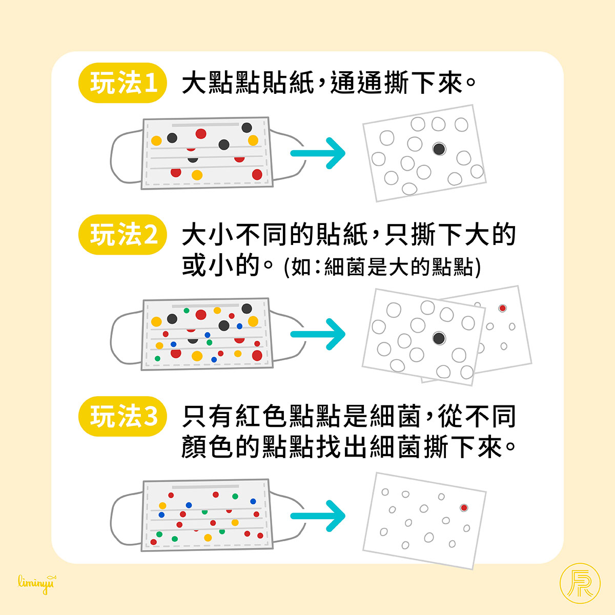 我們趕快把口罩上的細菌 (點點貼紙) 通通消滅吧!