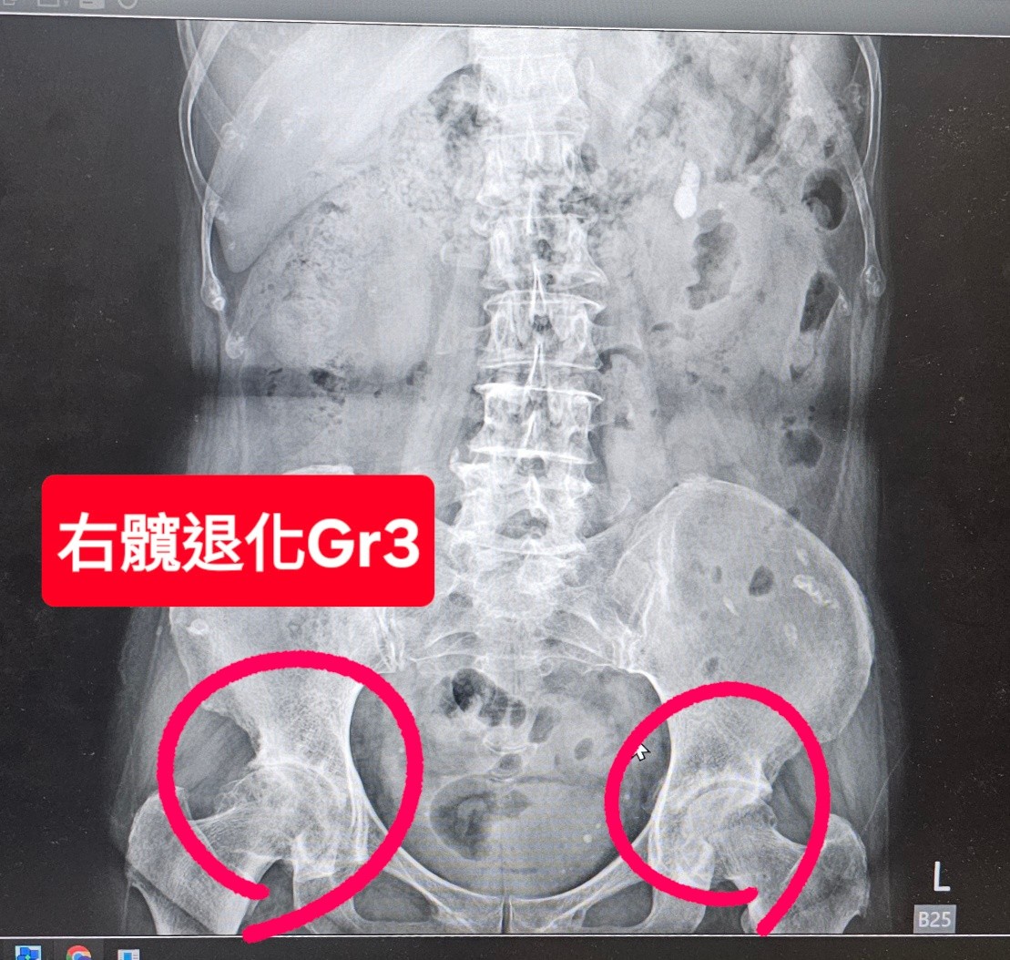 外院評估右髖關節為第三期退化性關節炎(Grade III OA),甚至建議直接進行手術